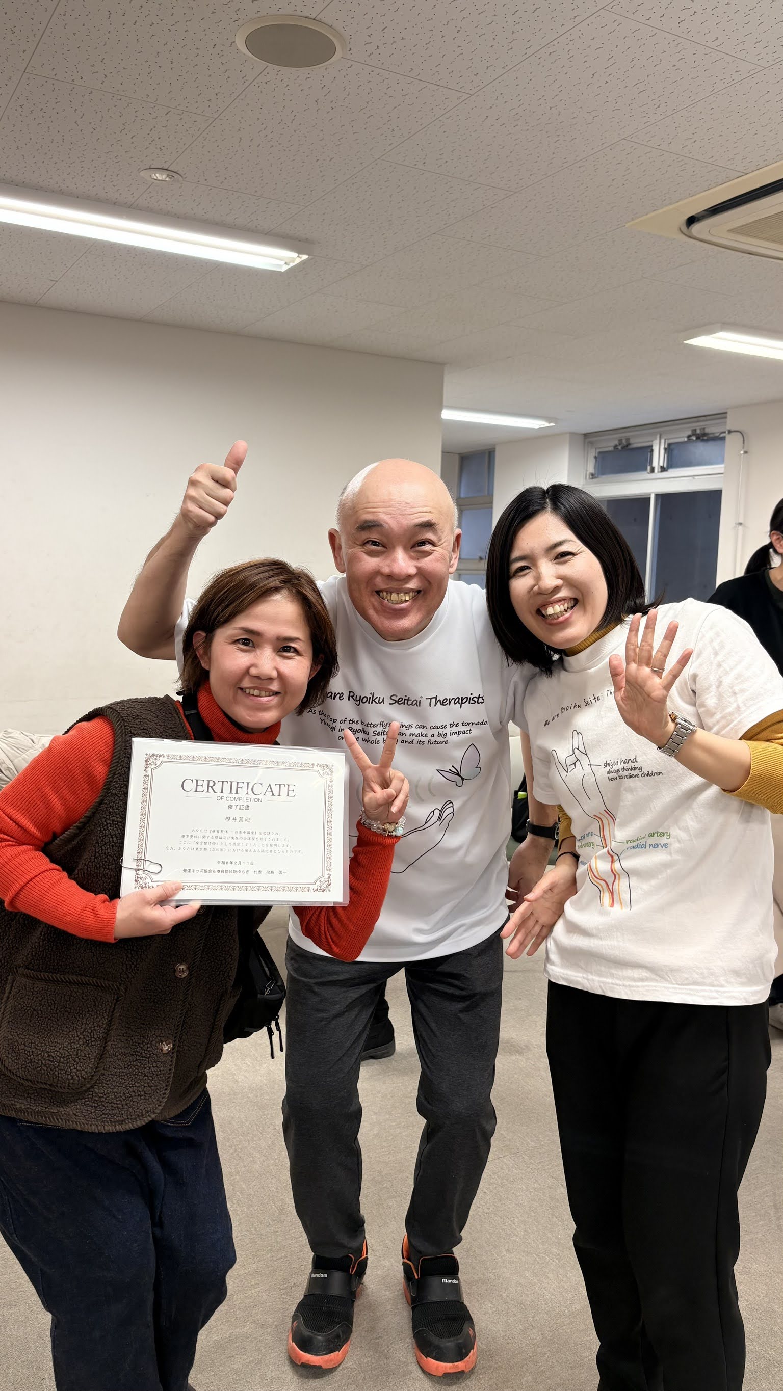 私もスタッフとして参加し、熱心に耳を傾けている参加者さんとともに一緒に学びを深めてきました。 勉強熱心なタッチアイの保護者様も講座を受講してくださり、療育整体師となりました!! おめでとうございます! ![]() ![]() 人の身体にとって、触れられることは単なるスキンシップではないのです。 皮膚と脳は同じところから細胞分裂しており 「触れる脳」ともいわれています。これが皮脳同根という考え方です。 皮膚は最大の感覚器ともいわれており、触覚から入る刺激は神経の発達に大きく関わっています。やさしく触れられることで安心感が生まれ、自律神経が整い、心も身体も落ち着きやすくなります。実はこの「安心できる感覚」が脳や神経のネットワークを育てるうえで重要なのです。 そう考えると幼児期のわらべうたや手遊びは本当に脳を育てる遊びということが納得できますよね!